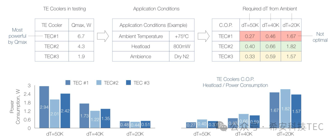 ດັ່ງທີ່ສະແດງຢູ່ໃນຕົວເລກຕໍ່ໄປນີ້, ພວກເຮົາໄດ້ເລືອກ TEC, QMAX ທີ່ແຕກຕ່າງກັນ, ແຕ່ສະພາບແວດລ້ອມການສະຫມັກດຽວກັນ. cop ຂອງ TEC # 1 ແມ່ນຕໍ່າທີ່ສຸດ, ໃນຂະນະທີ່ QMAX ຂອງມັນແມ່ນໃຫຍ່ທີ່ສຸດ.